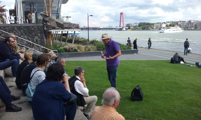 Spionnennest 1914-1918) tijdens de 'Rotterdam WO1 Spionagewandeling'. Hoor bij relevante adressen wat er in deze spannende periode werd uitgespookt door welke